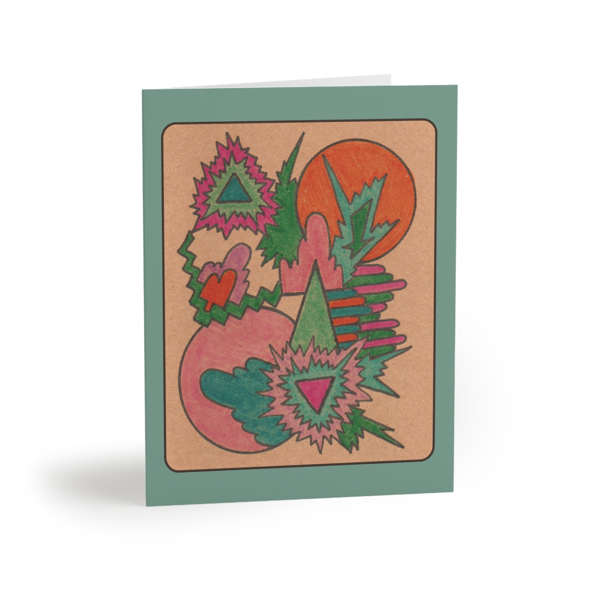These abstract colorful cosmic greeting cards feature a high-resolution print of Amy Blaschke’s original drawing, created with colored marker and ink on kraft paper. The artwork resonates with contemporary aesthetics: sacred geometry, cosmic surrealism, retro-futurist glyphwork, and intuitive abstraction.