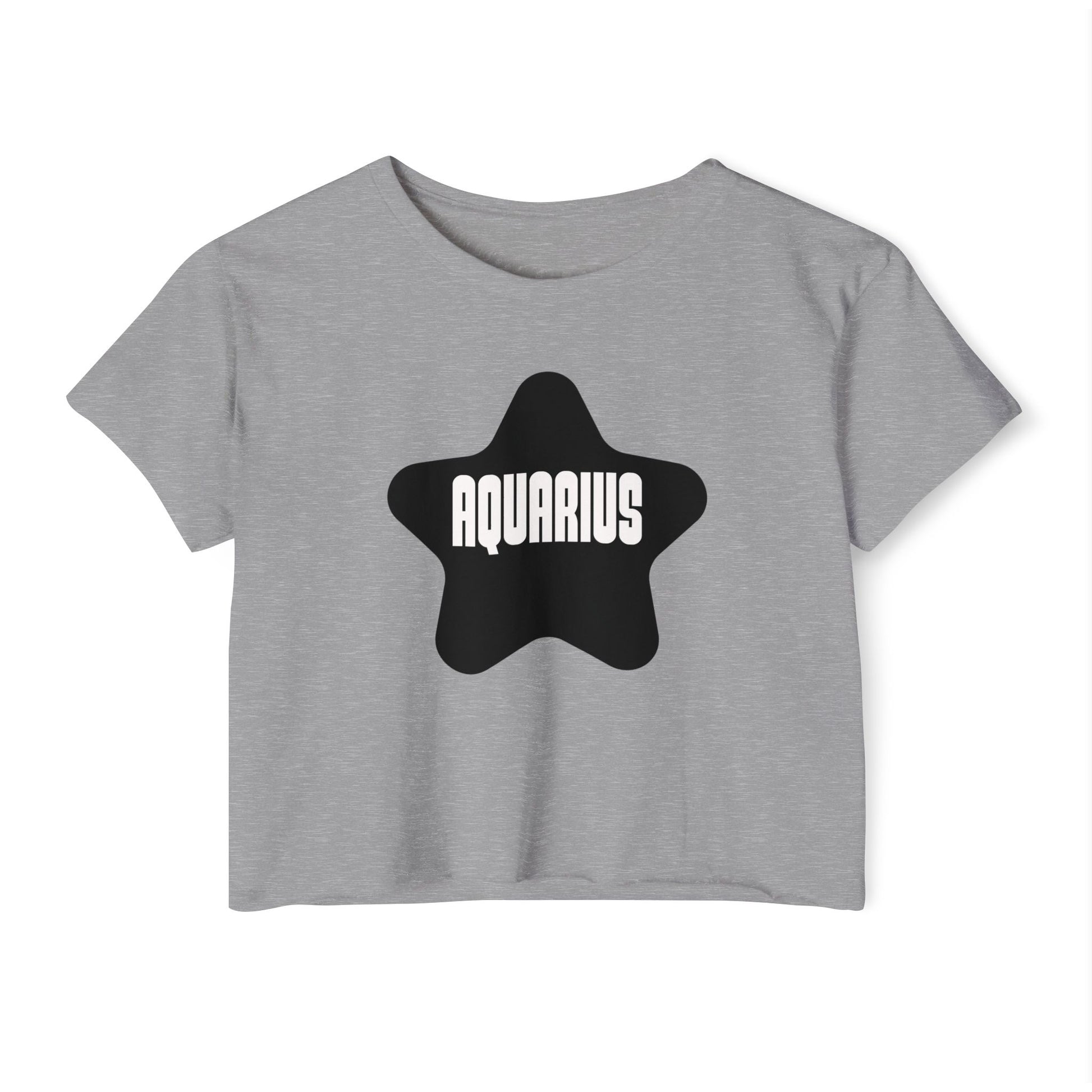 Aquarius Black Star Crop Top – Retro Zodiac Tee