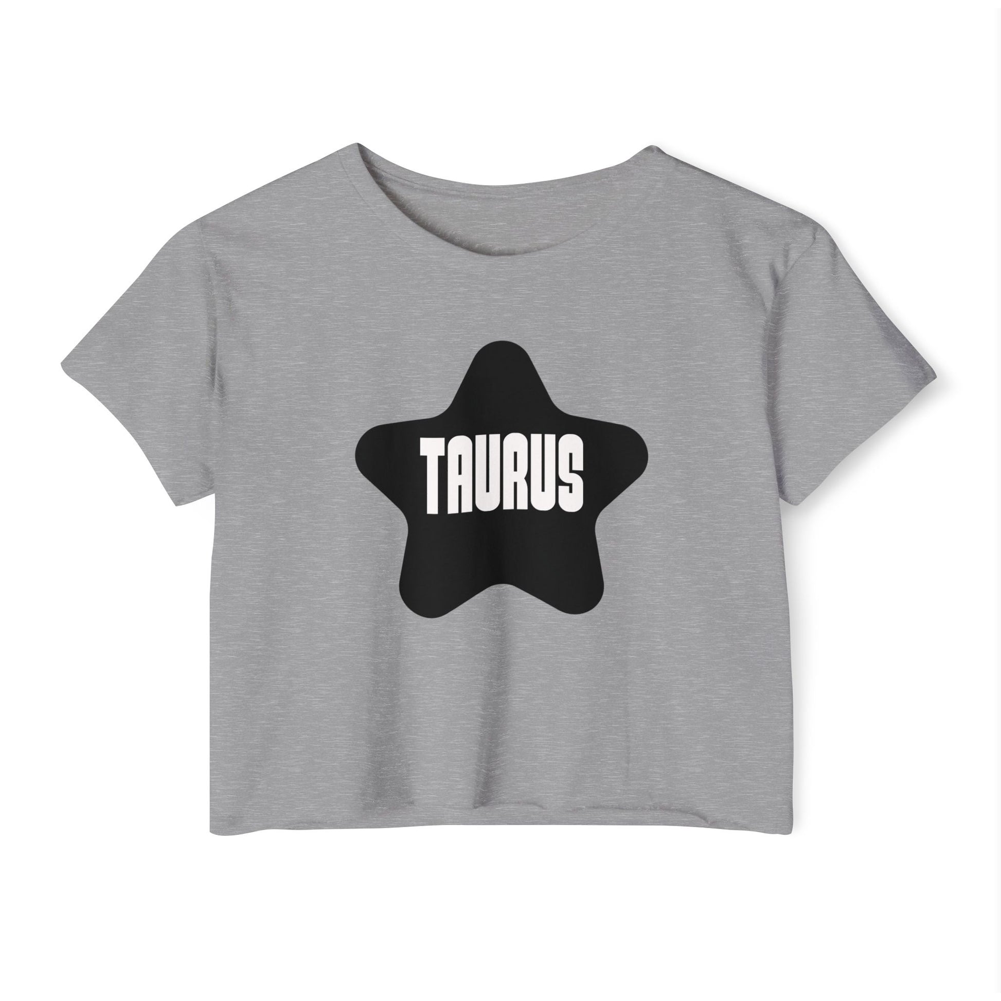 Taurus Black Star Crop Top – Retro Zodiac Tee