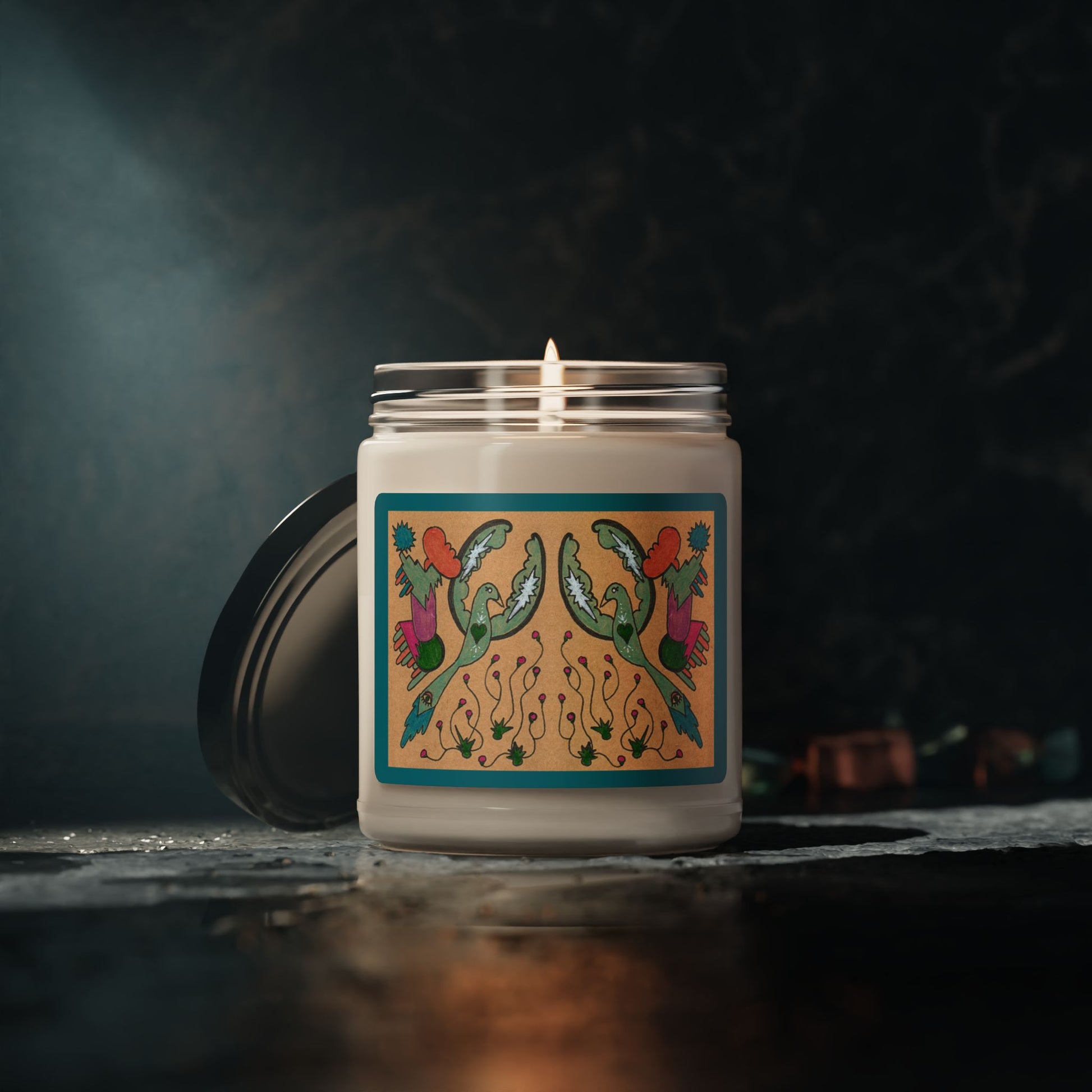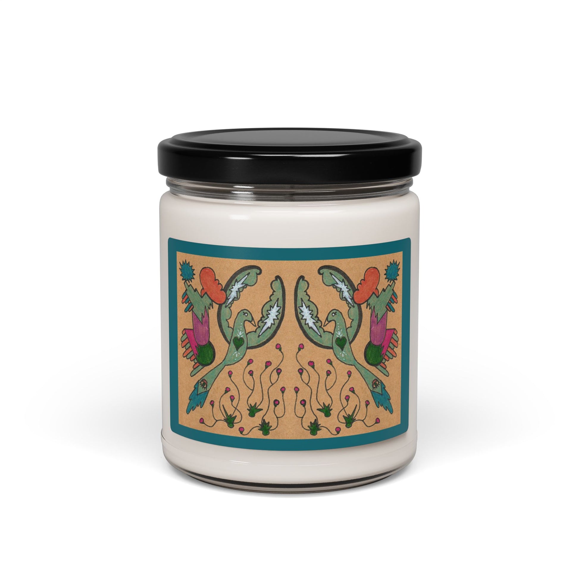 Colorful Cosmic Twin Bird Illustration Ritual Candle