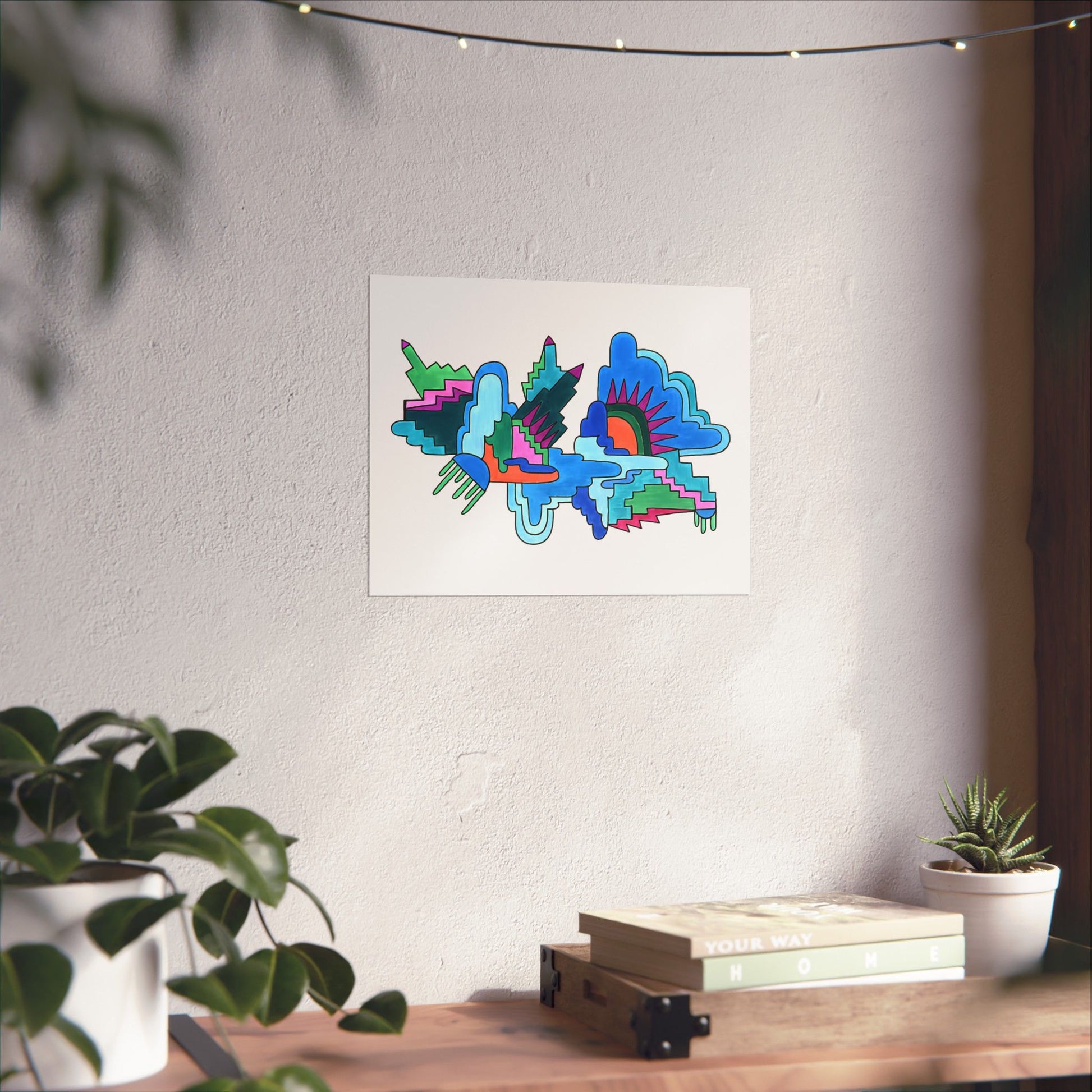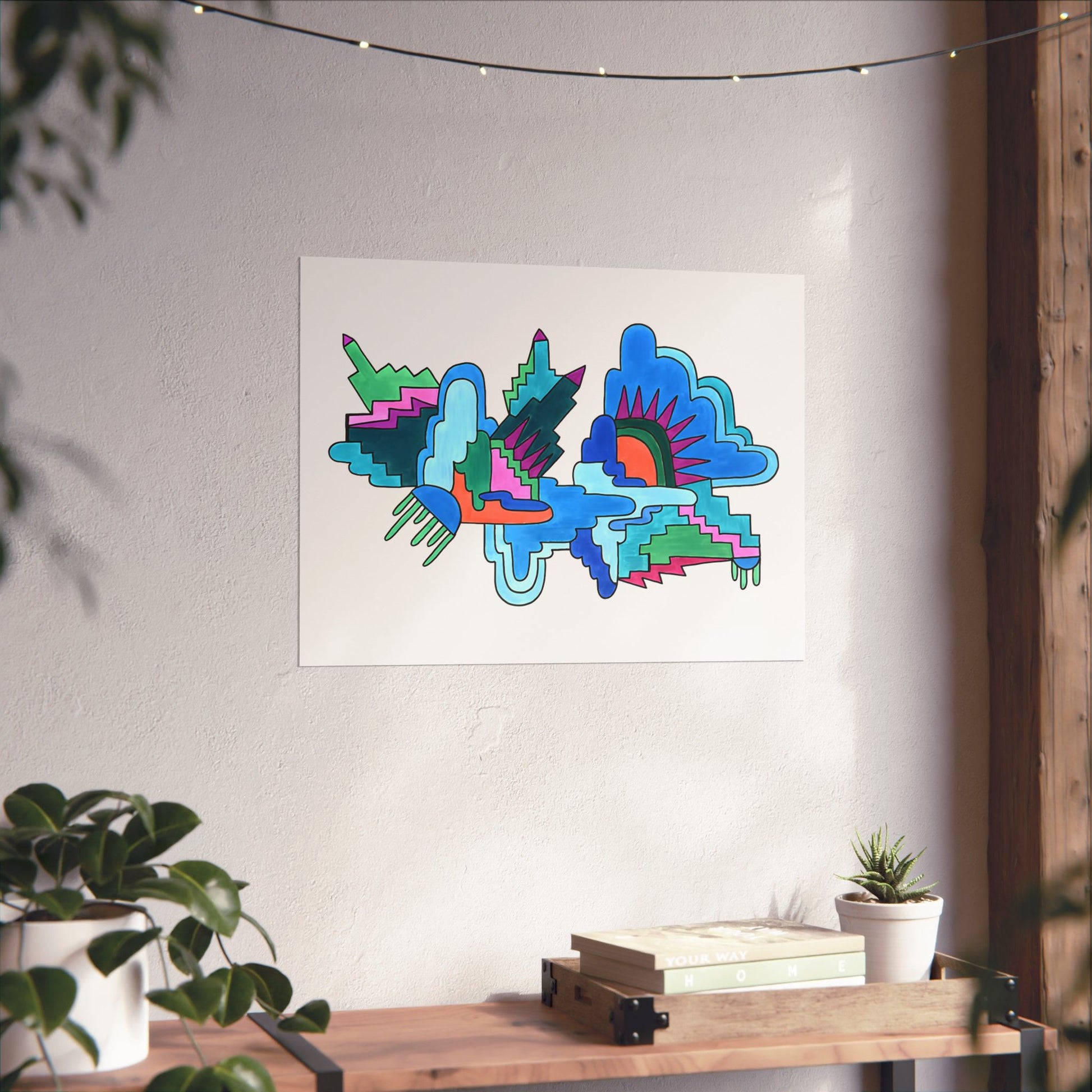 This museum-grade print is reproduced with pigment-based archival inks on premium matte paper, capturing every gesture, ripple, and resonance of the original drawing. Whether hung as ritual décor, cosmic anchor, or fine art centerpiece, Cosmic Dreamscape brings rhythm, color, and clarity into your space.