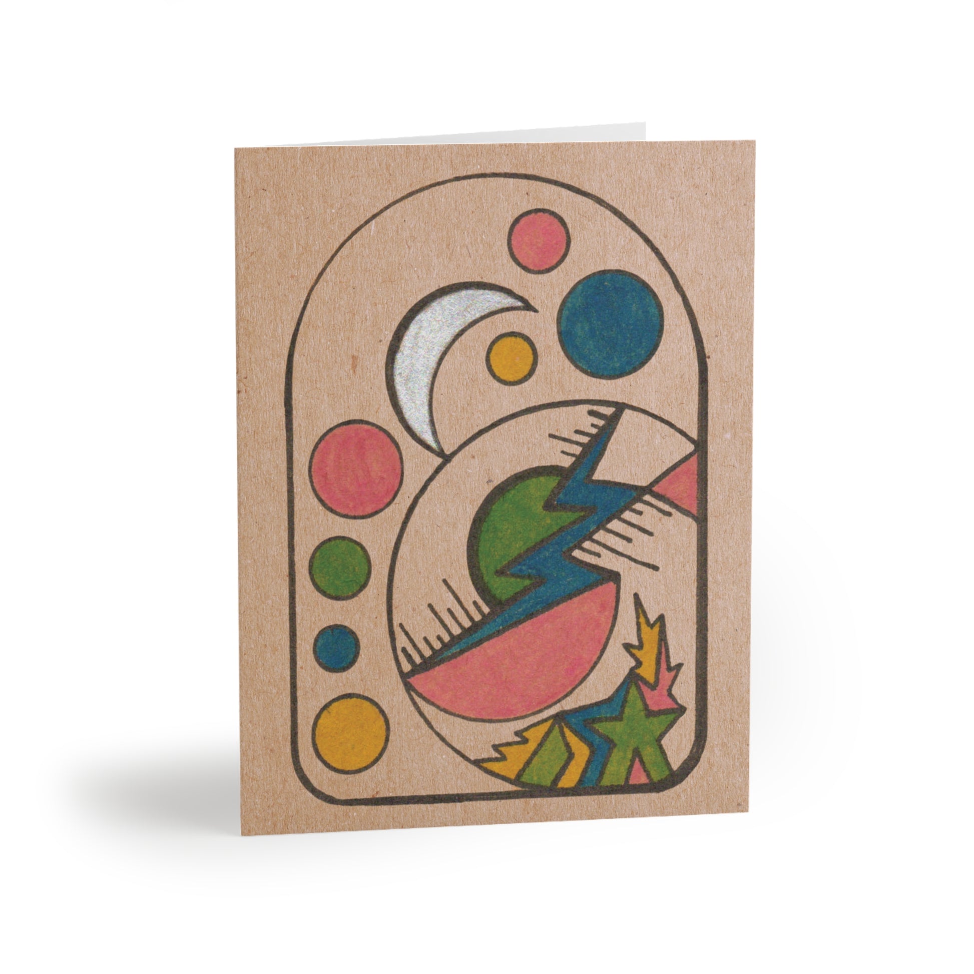 Crescent Moon & Cosmic Orbs Greeting Card Set of 8