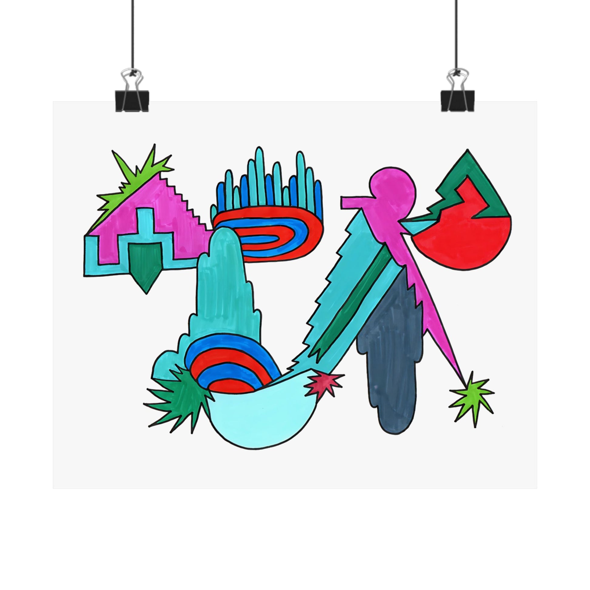 Featuring bold color fields, symbolic geometry, and dynamic symmetry, Dream Circuit invites contemplation of momentum, perception, and inner alignment. The magenta figure appears as a cosmic conductor, bridging crystalline structures and fluid pathways. This is art as encoded ritual: movement stilled into form, emotion refracted through color.