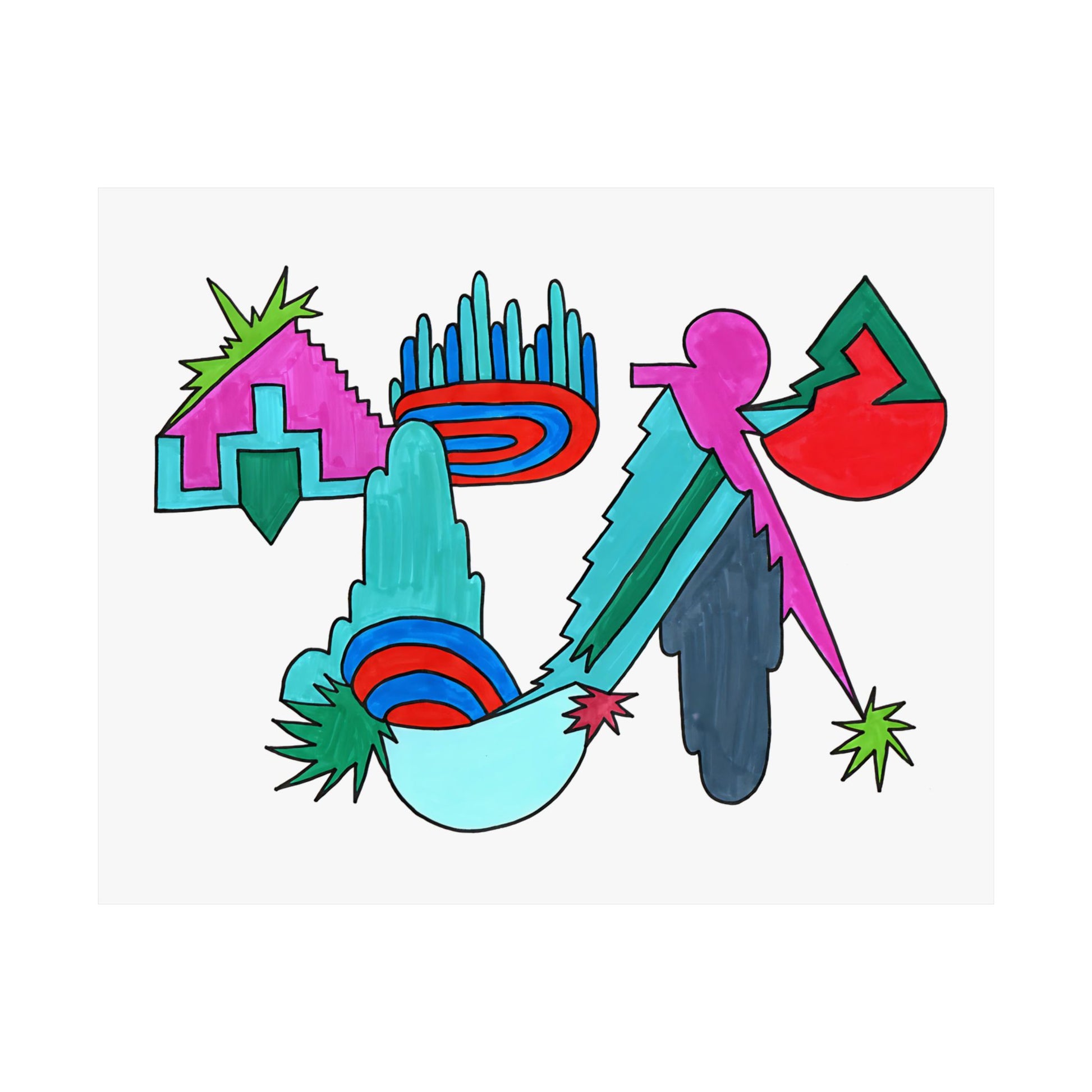Dream Circuit is an original hand-drawn artwork by Amy Blaschke, founder of Mystic Quarterly. Created using archival ink liner and watercolor markers in an intuitive, improvisational process, this piece is a multidimensional glyph—part dream map, part spiritual circuitry.