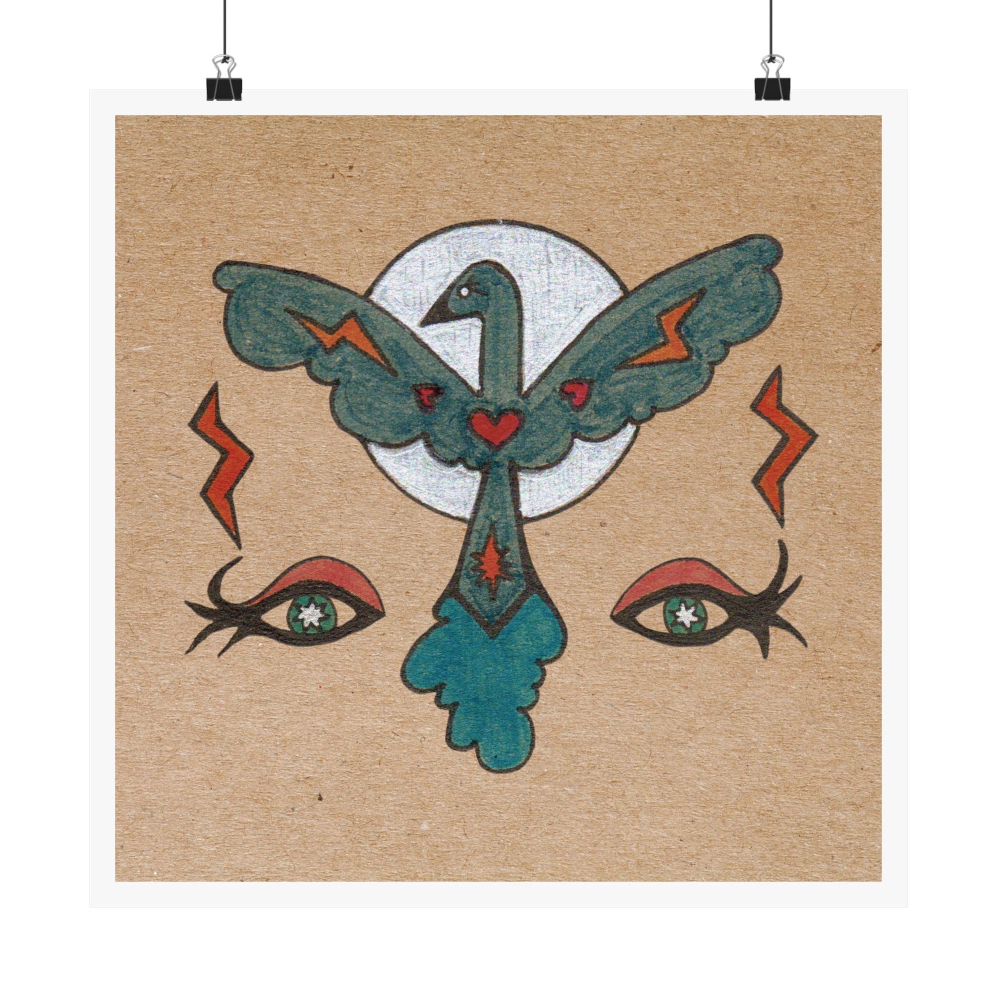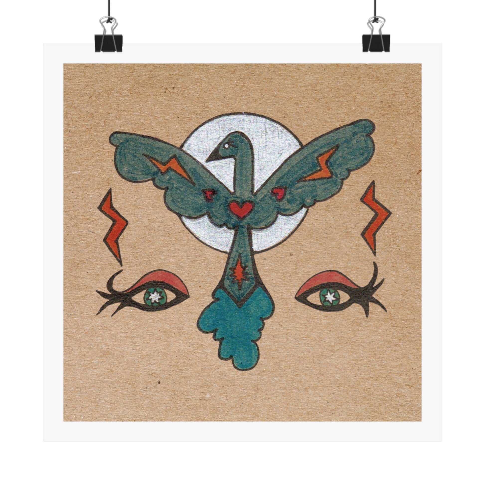 Feel to See – Symbolic Eyes Bird and Moon Cosmic Art Print