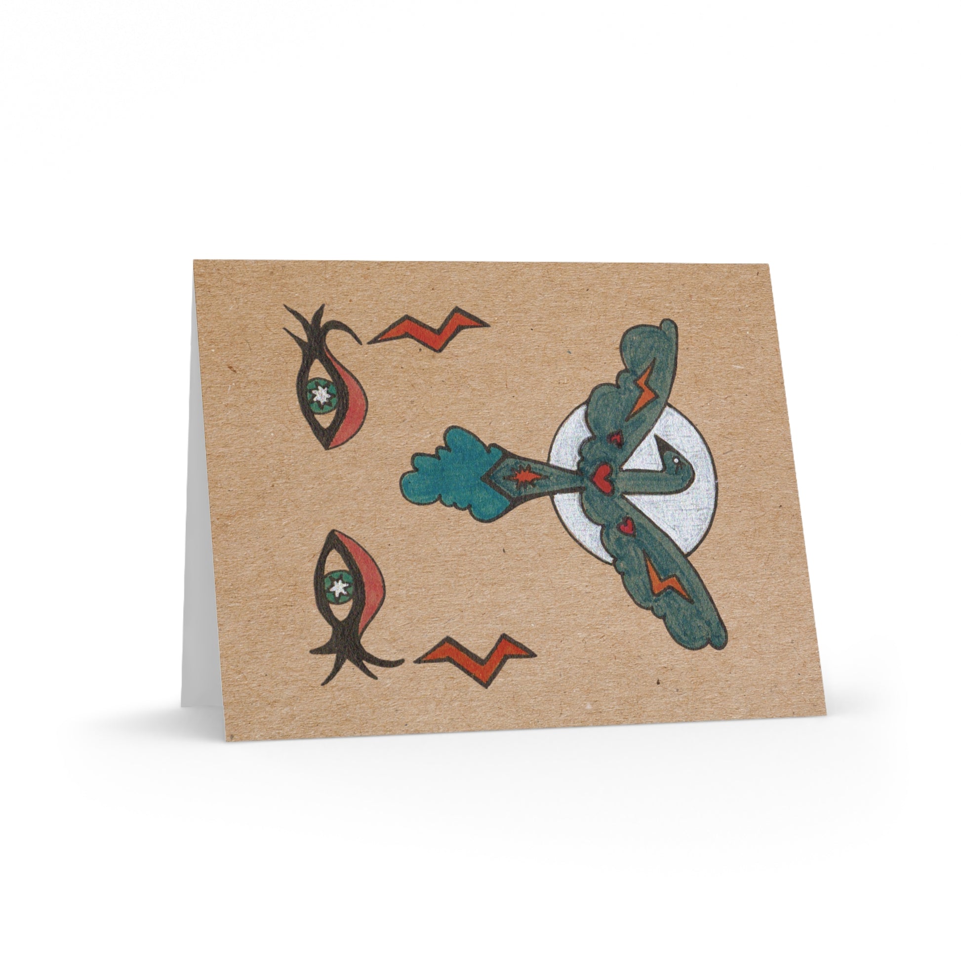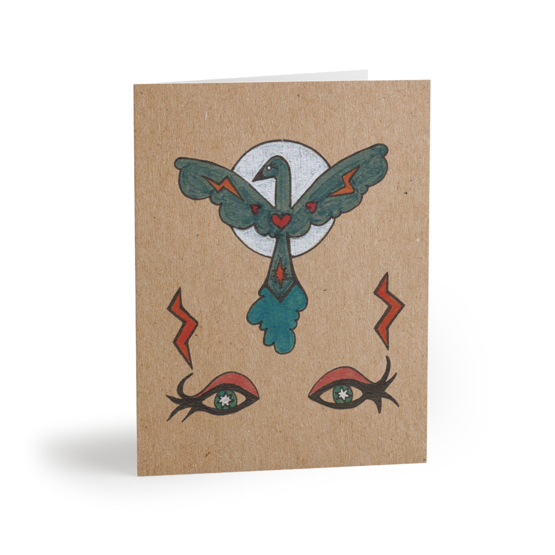 Full Moon Rising Abstract Bird Greet Cards Set of 8