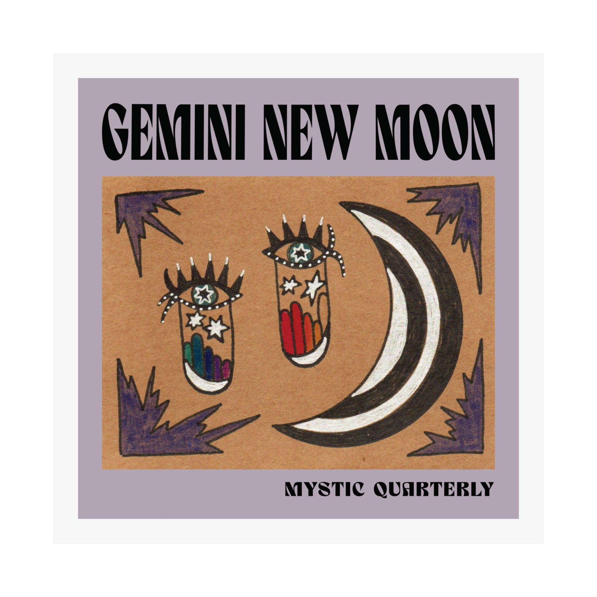 This hand-drawn Gemini New Moon artwork is a visual thought experiment — a sacred mirror of uncertainty, wonder, and quiet courage. Featuring twin rainbow eyes, a bold crescent moon, and an original lunar affirmation, this print was created to honor the May 2025 Gemini New Moon.