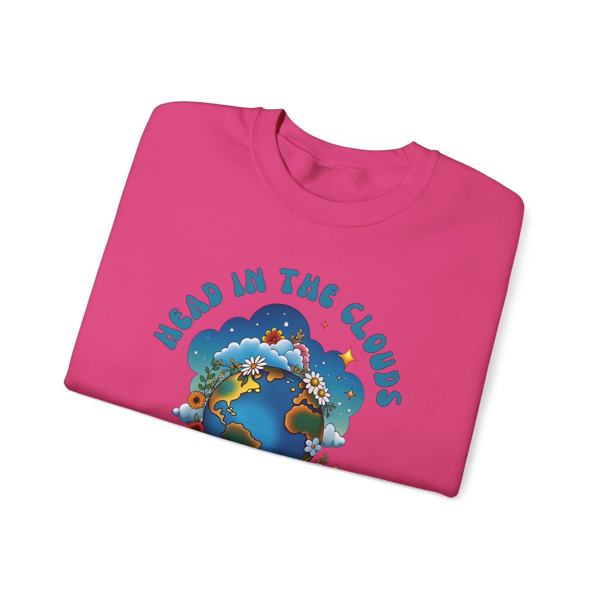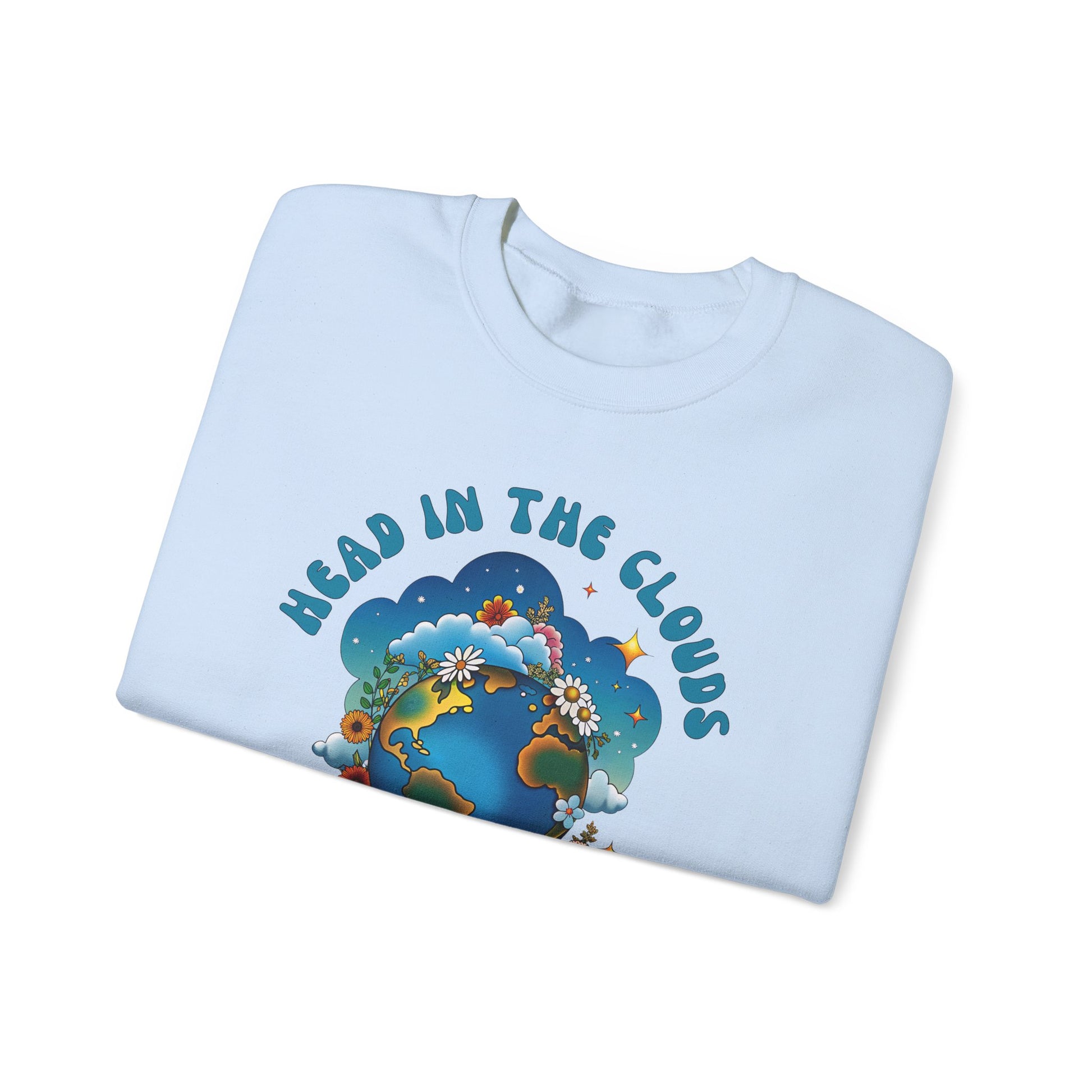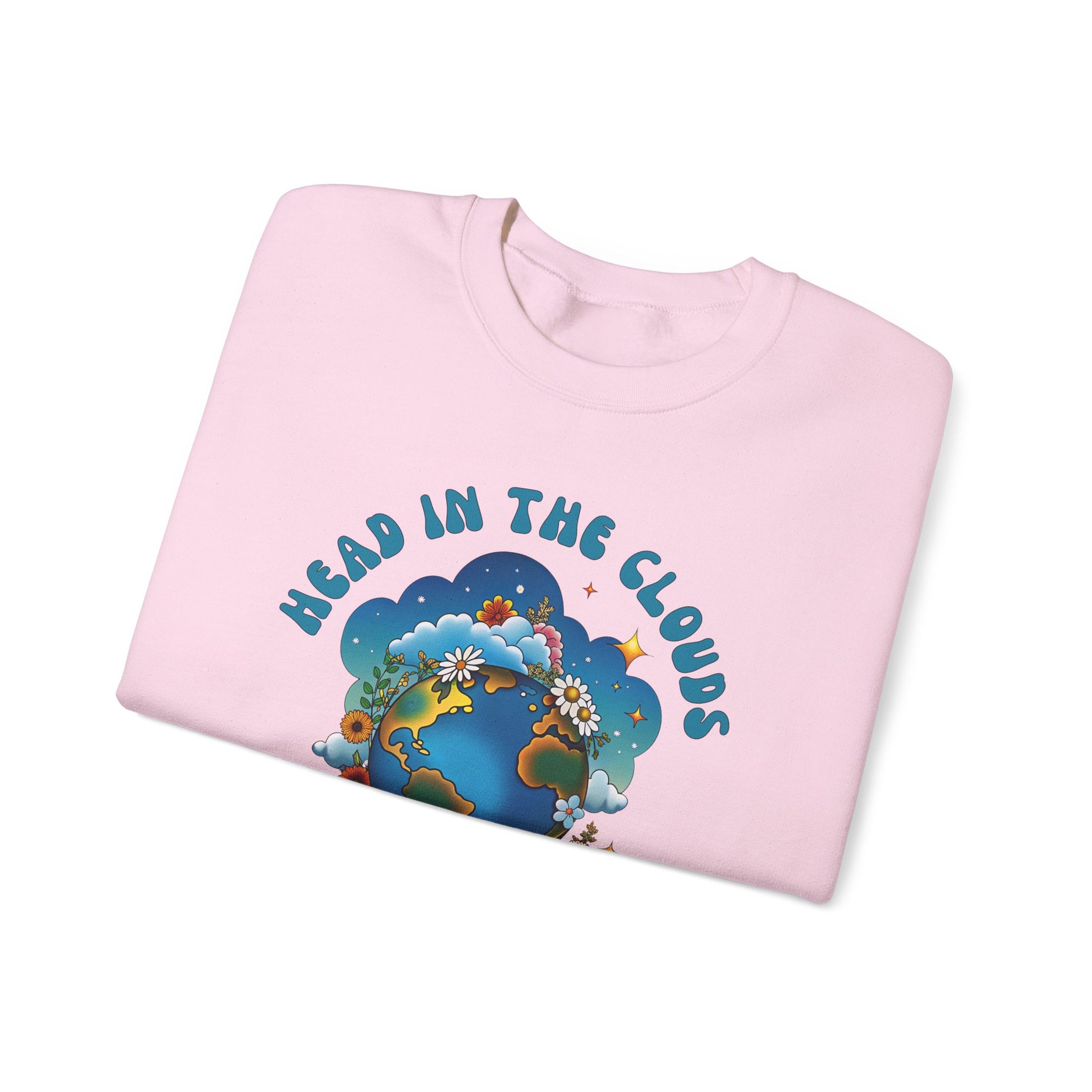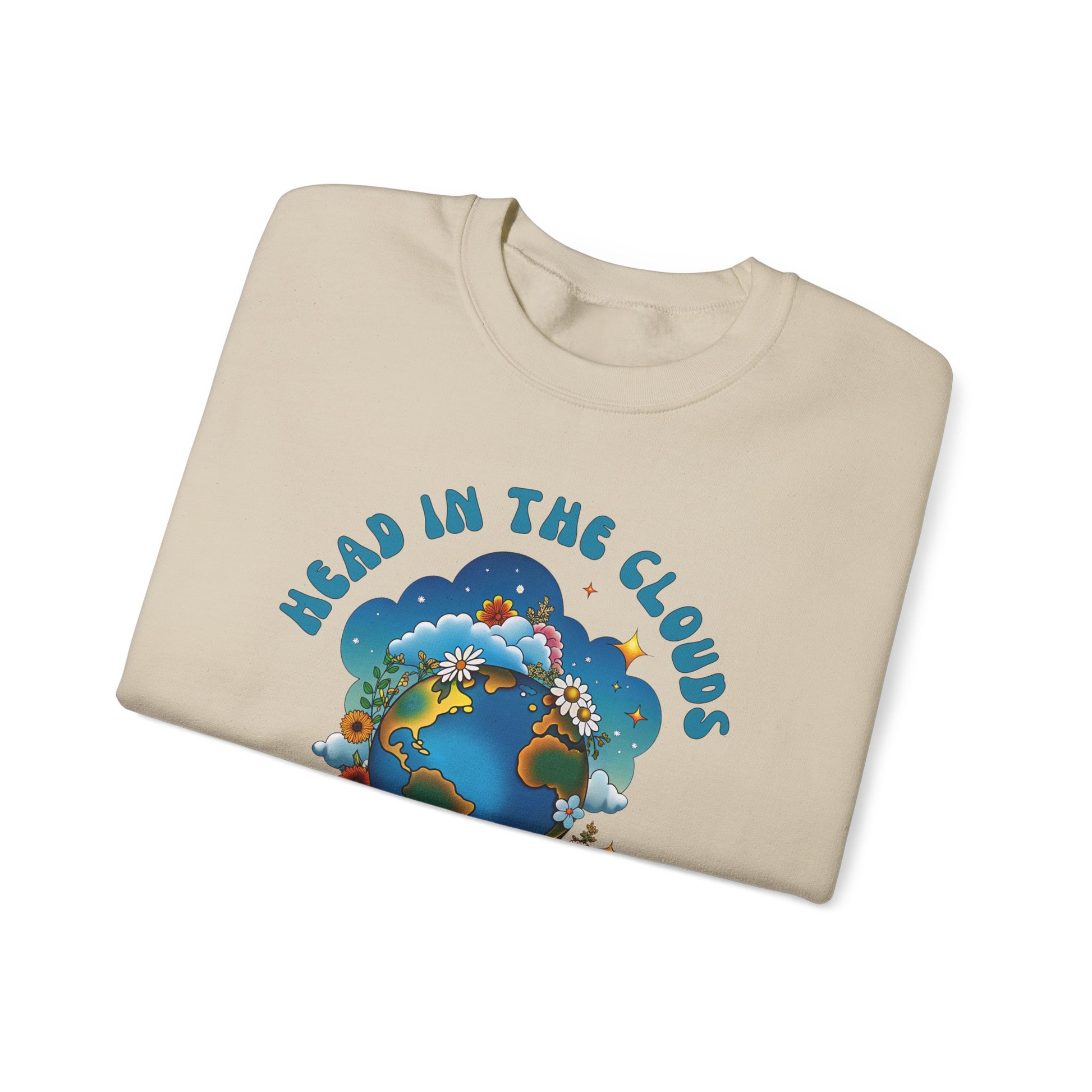 Featuring a retro planet illustration surrounded by fluffy clouds, twinkling stars, and blooming flowers, this ethereal sweatshirt blends nostalgia with a modern celestial twist.
