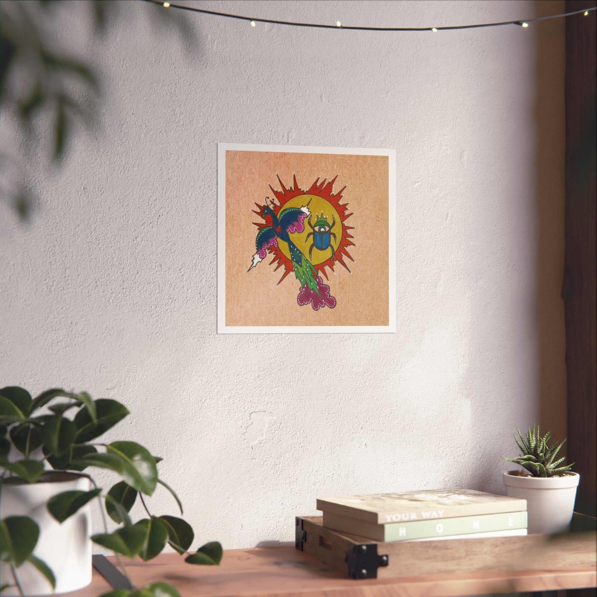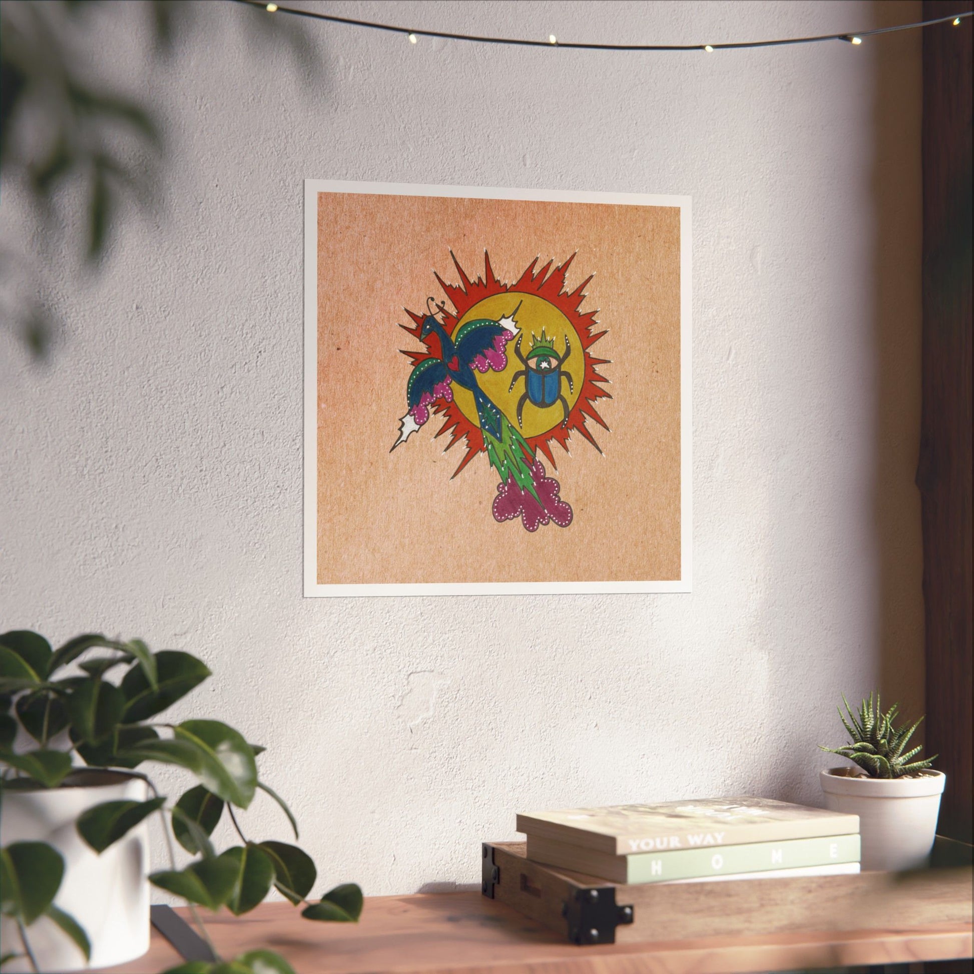 Integrate to Radiate – Symbolic Sun Scarab and Peacock Cosmic Art Print