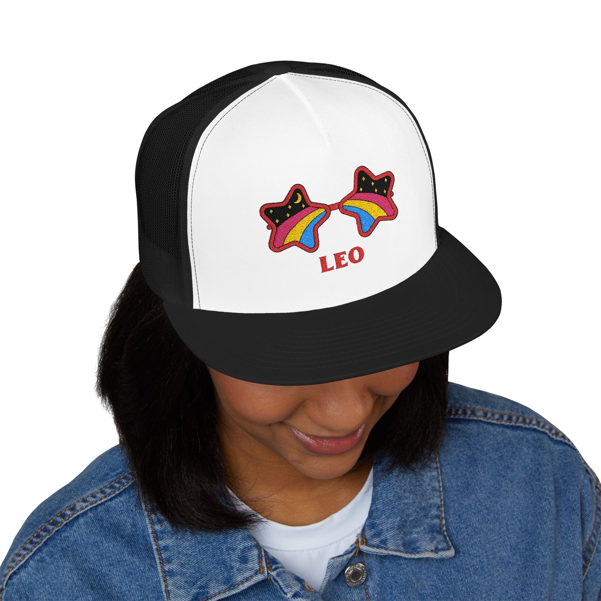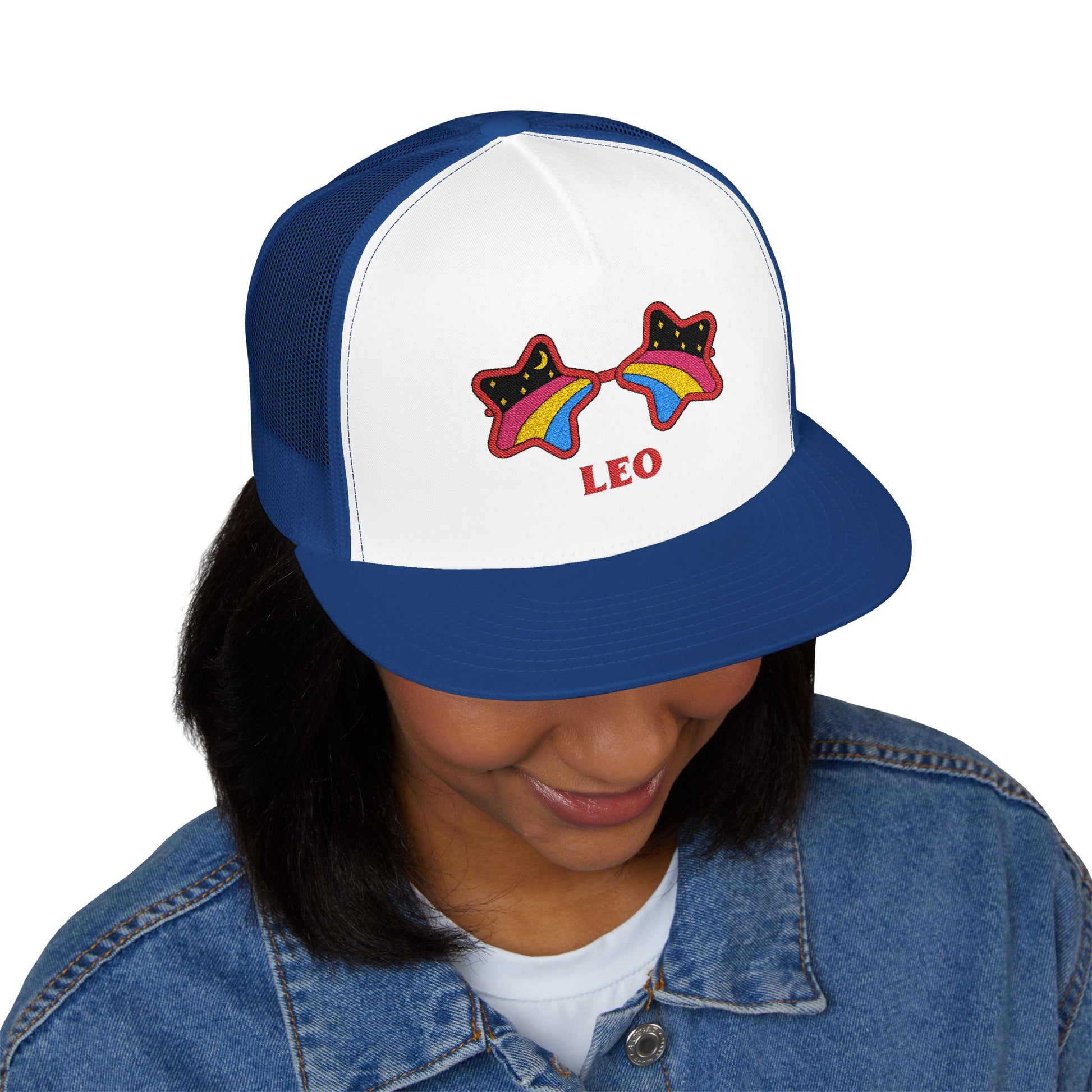 Show off your cosmic style with this Leo zodiac trucker hat, embroidered with retro rainbow star shades and bold lettering. Perfect for astrology lovers, zodiac birthday gifts, or everyday streetwear, this astrology cap blends retro trucker vibes with modern fashion.