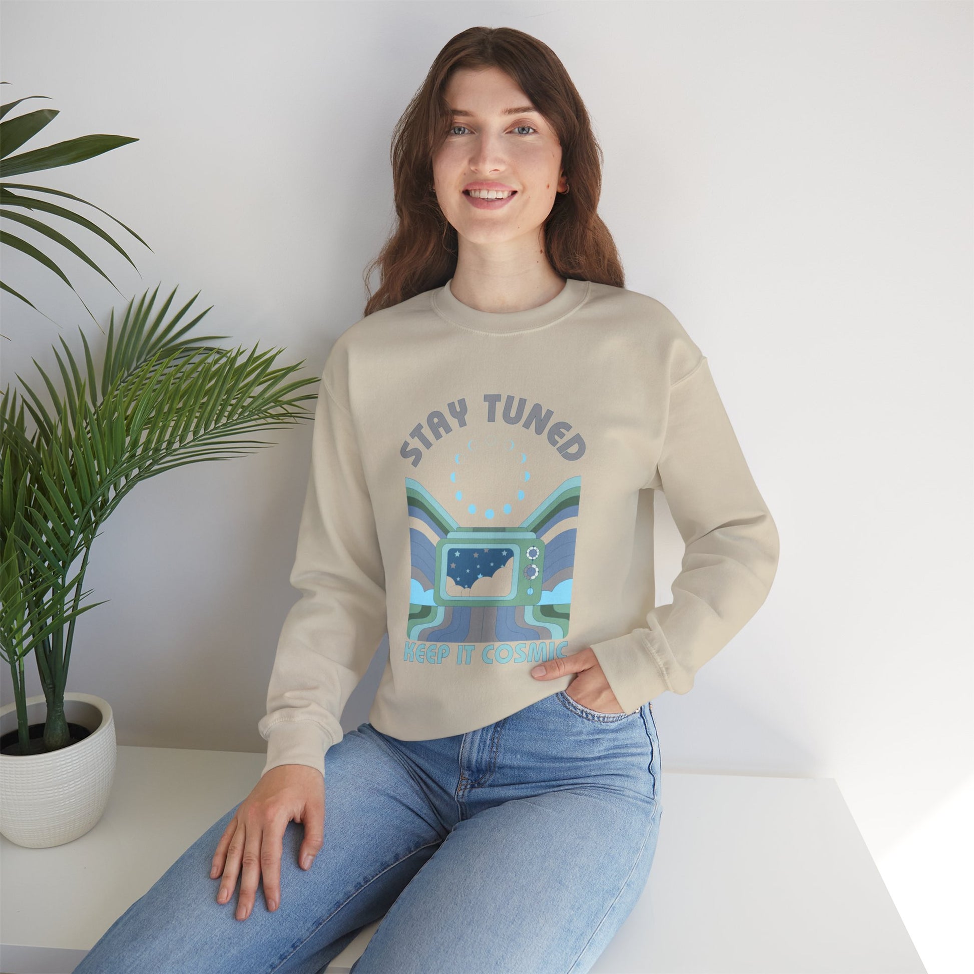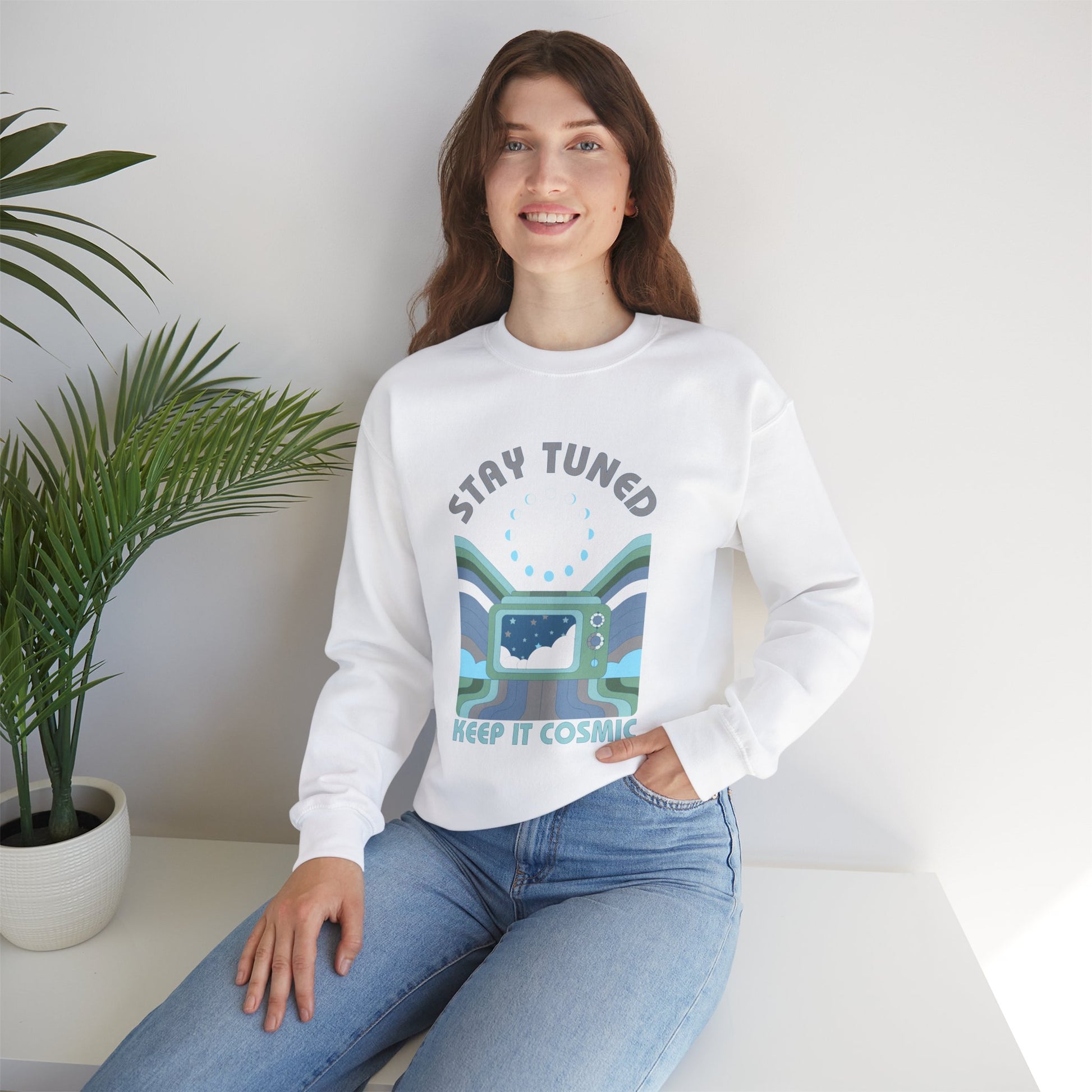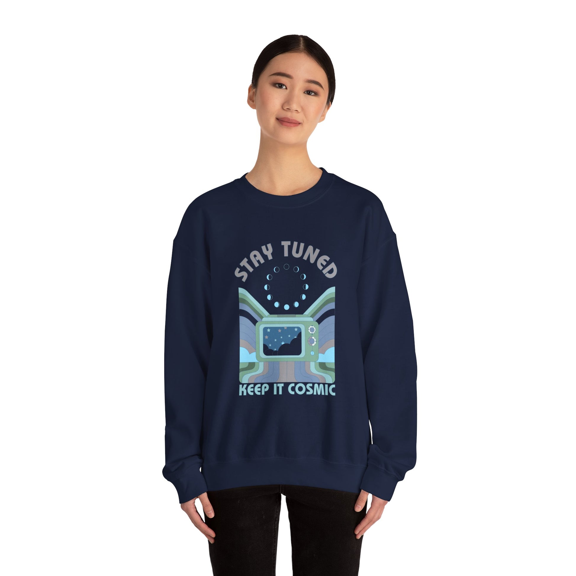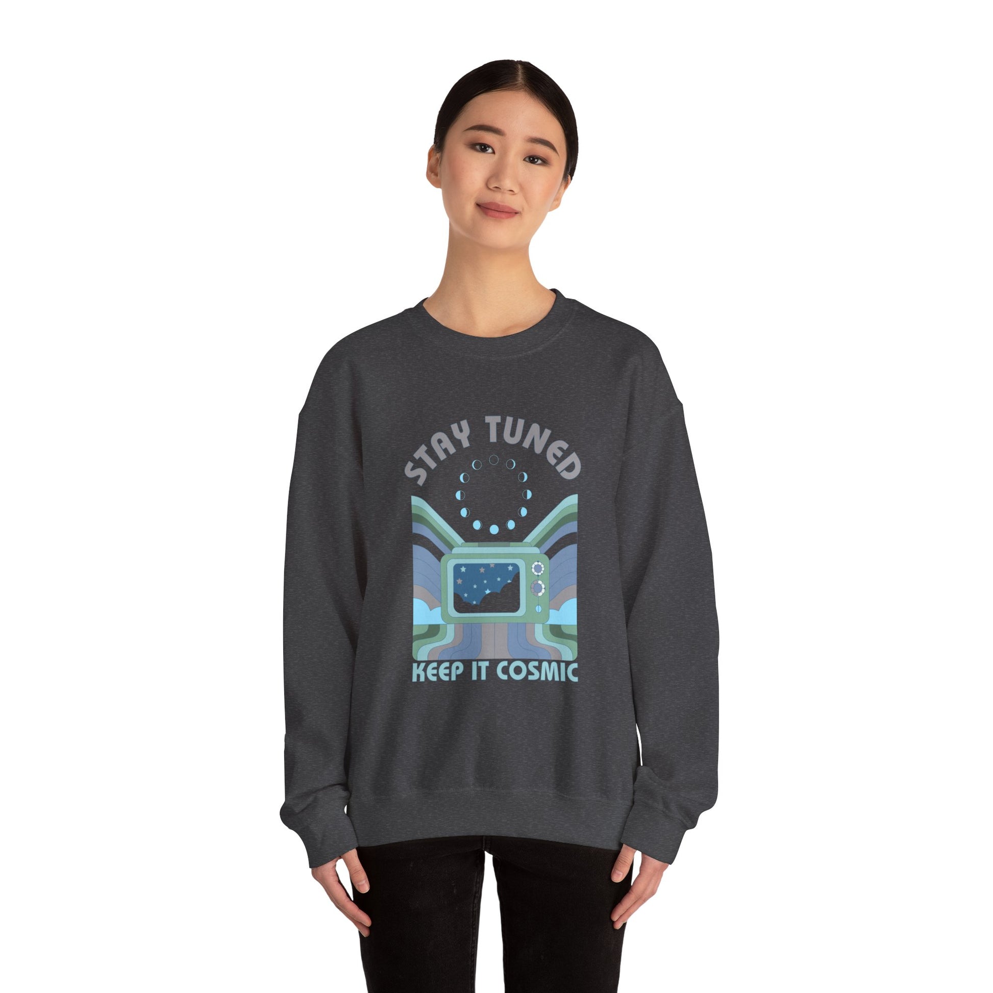 Stay Tuned Moon Phase Retro Sweatshirt - Earthglow Celestial Crewneck