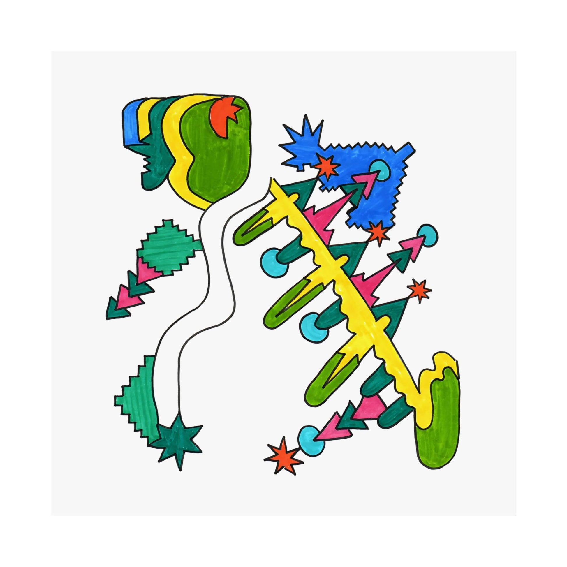 An electric lattice of symbols and sparks, Wild Circuit channels the vibrant chaos of transmission and transformation. Arrows, stars, and pathways zigzag in radiant greens, pinks, and yellows—evoking systems that defy straight lines and minds that think in spirals. A deco-signal from the unseen grid.